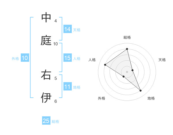 中庭 右伊さんの総格は25画の4点!