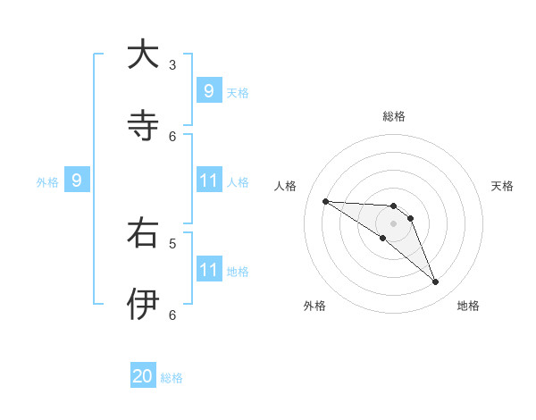 大寺 右伊さんを姓名の画数から五運を鑑定