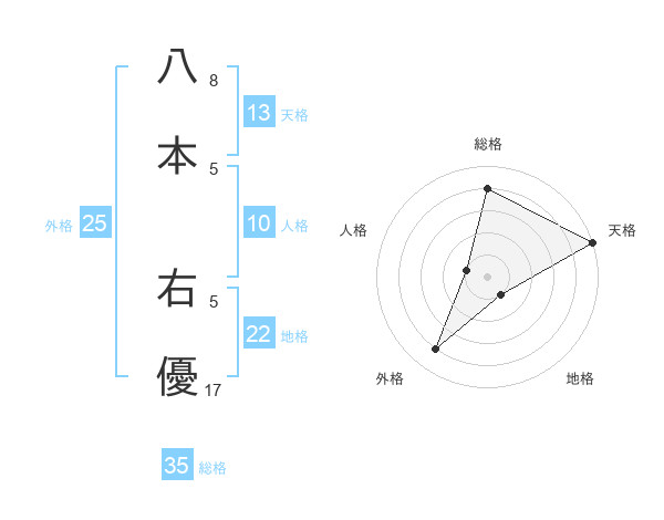 八本 右優さんの天格は13画の5点!