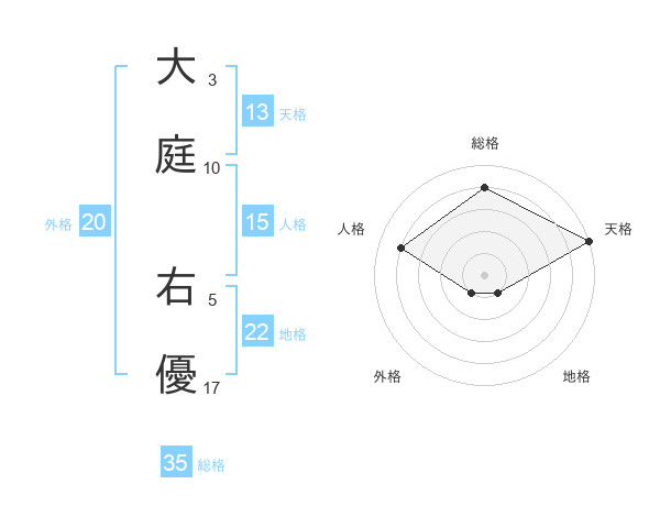 大庭 右優さんの総格は35画の4点!