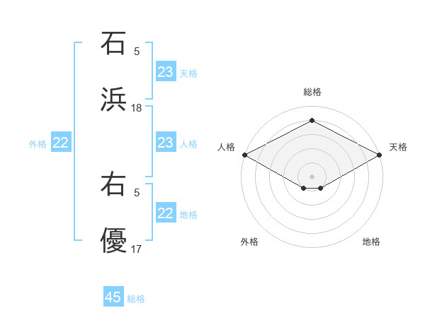 石浜 右優さんの総格は45画の4点!