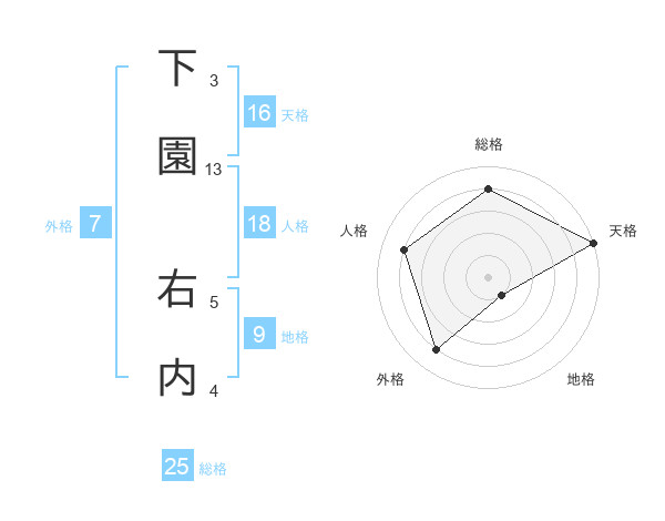 下園 右内さんの総格は25画の4点!