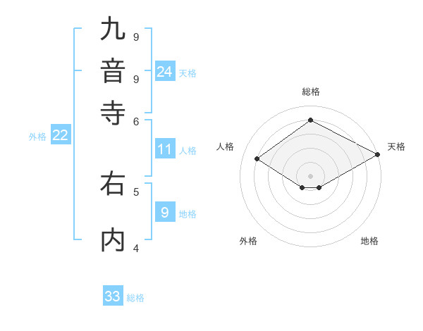 九音寺 右内さんを姓名の画数から五運を鑑定