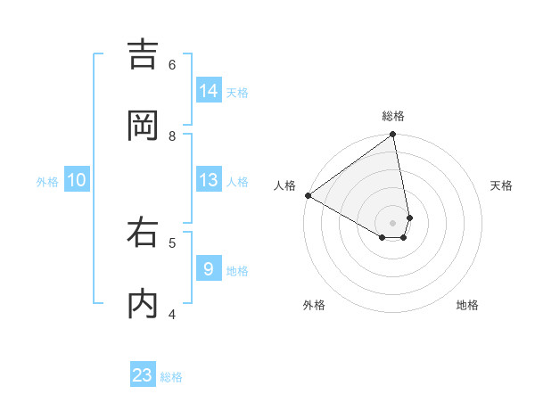 吉岡 右内さんの総格は23画の5点!