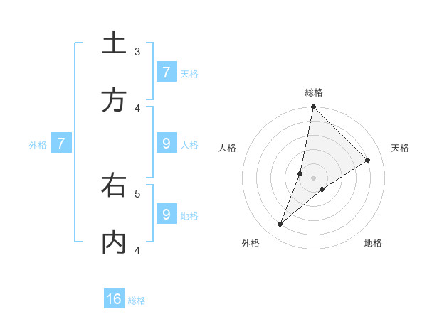 土方 右内さんの総格は16画の5点!