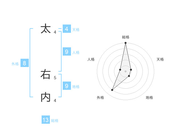 太 右内さんの総格は13画の5点!