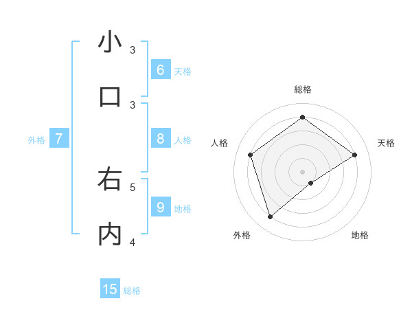 小口 右内さんの総格は15画の4点!