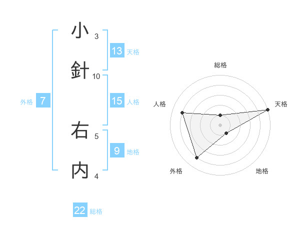小針 右内さんの総格は22画の1点!