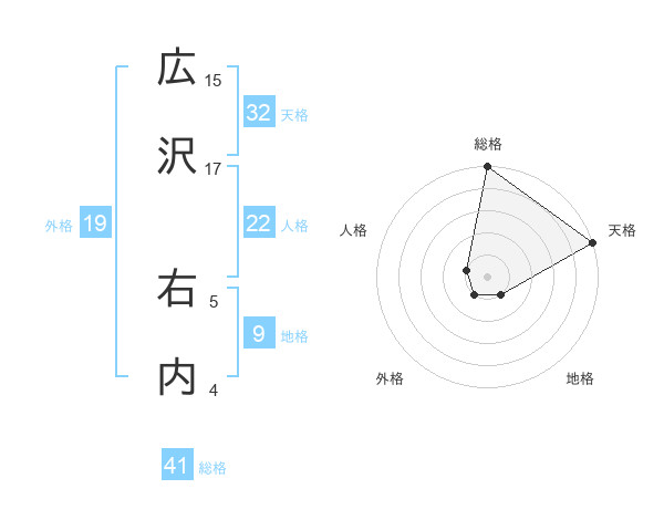 広沢 右内さんの総格は41画の5点!