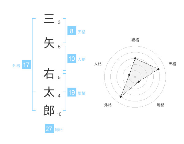 三矢 右太郎さんを姓名の画数から五運を鑑定