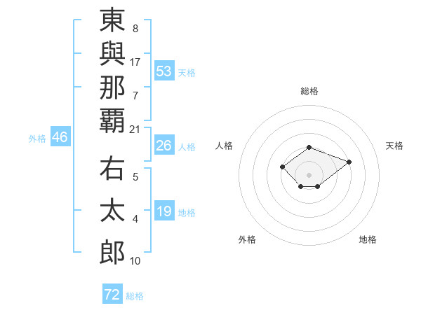 東與那覇 右太郎さんを姓名の画数から五運を鑑定