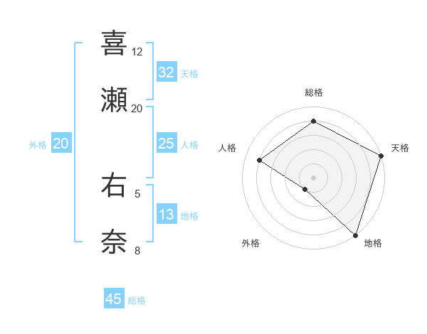 喜瀬 右奈さんの総格は45画の4点!