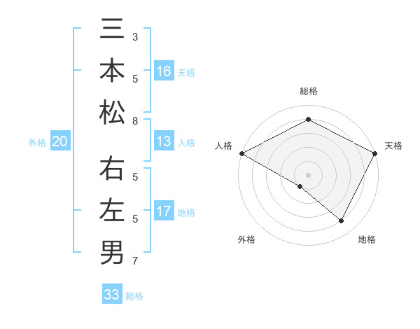 三本松 右左男さんを姓名の画数から五運を鑑定