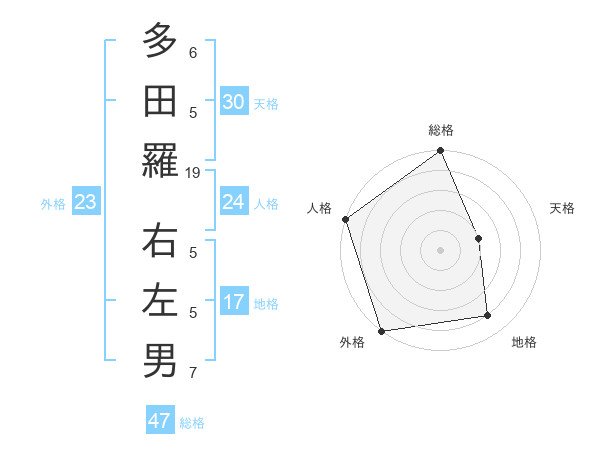 多田羅 右左男さんを姓名の画数から五運を鑑定