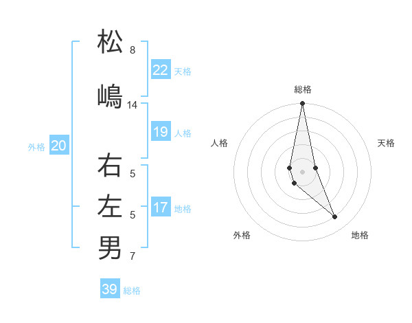 松嶋 右左男さんを姓名の画数から五運を鑑定