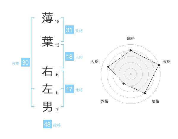 薄葉 右左男さんを姓名の画数から五運を鑑定
