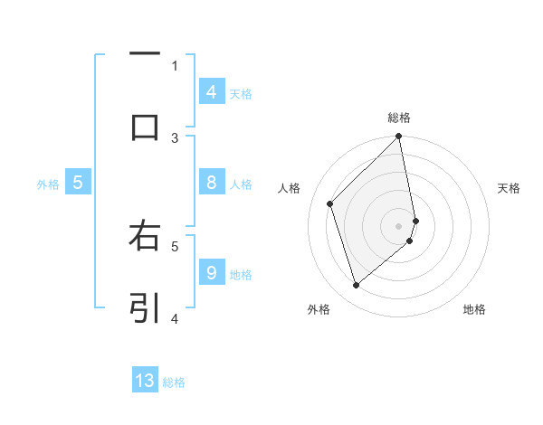 一口 右引さんの総格は13画の5点!
