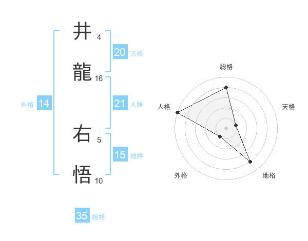 井龍 右悟さんを姓名の画数から五運を鑑定