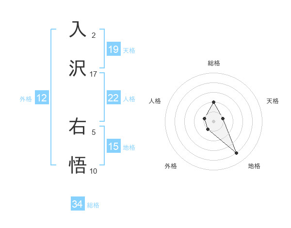 入沢 右悟さんを姓名の画数から五運を鑑定