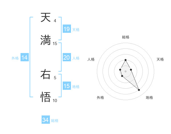 天満 右悟さんの総格は34画の2点!