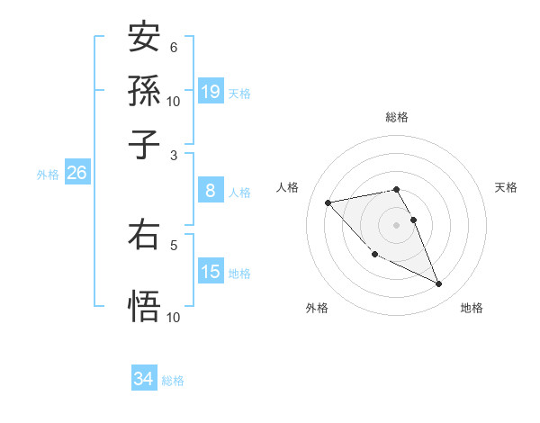 安孫子 右悟さんの総格は34画の2点!