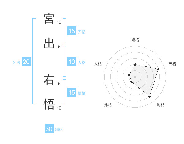 宮出 右悟さんの天格は15画の4点!
