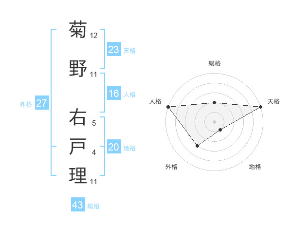 菊野 右戸理さんを姓名の画数から五運を鑑定
