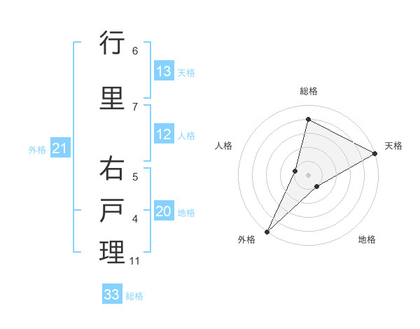 行里 右戸理さんを姓名の画数から五運を鑑定