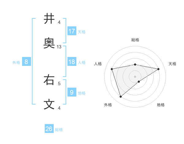 井奥 右文さんの総格は26画の2点!