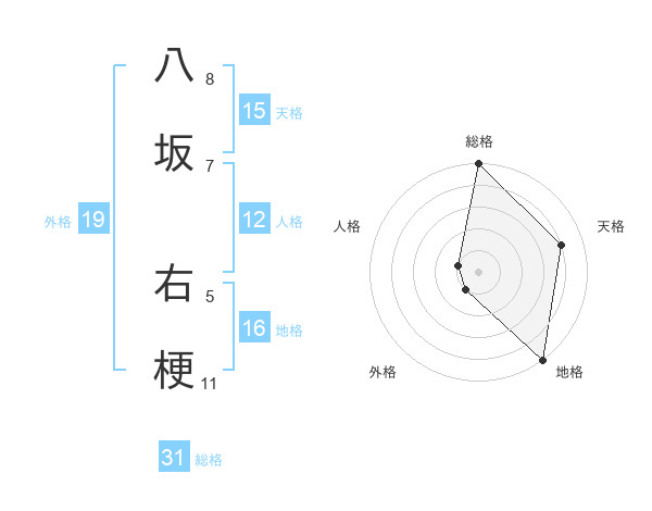 八坂 右梗さんを姓名の画数から五運を鑑定