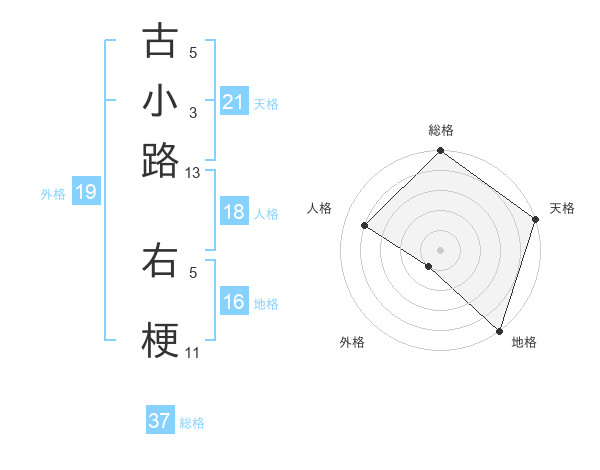 古小路 右梗さんを姓名の画数から五運を鑑定