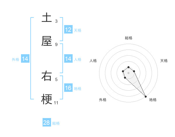土屋 右梗さんの総格は28画の1点!