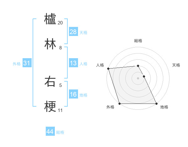 櫨林 右梗さんを姓名の画数から五運を鑑定