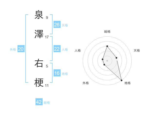 泉澤 右梗さんの天格は26画の2点!