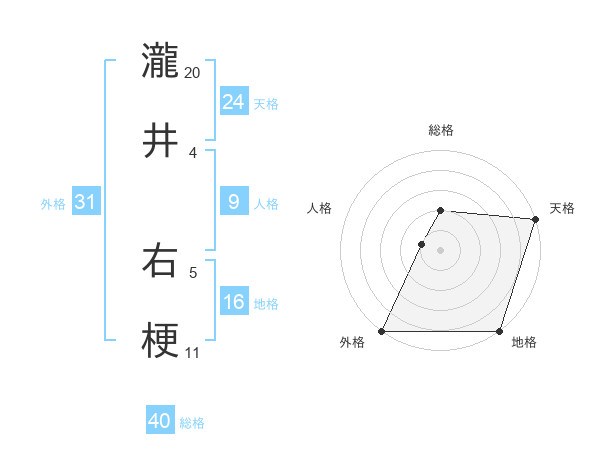 瀧井 右梗さんの天格は24画の5点!