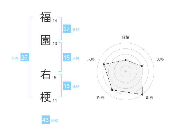 福園 右梗さんの総格は43画の2点!