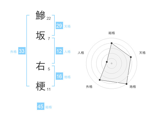 鰺坂 右梗さんの総格は45画の4点!