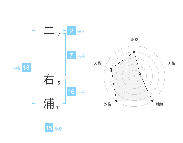 二 右浦さんの外格は13画の5点!