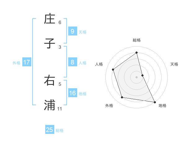庄子 右浦さんを姓名の画数から五運を鑑定