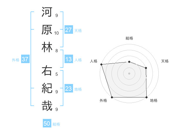 河原林 右紀哉さんの外格は37画の5点!