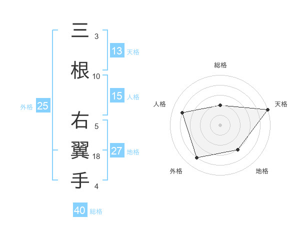 三根 右翼手さんを姓名の画数から五運を鑑定