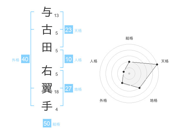 与古田 右翼手さんを姓名の画数から五運を鑑定
