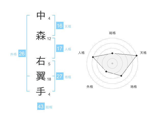 中森 右翼手さんを姓名の画数から五運を鑑定