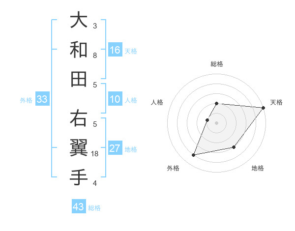 大和田 右翼手さんを姓名の画数から五運を鑑定
