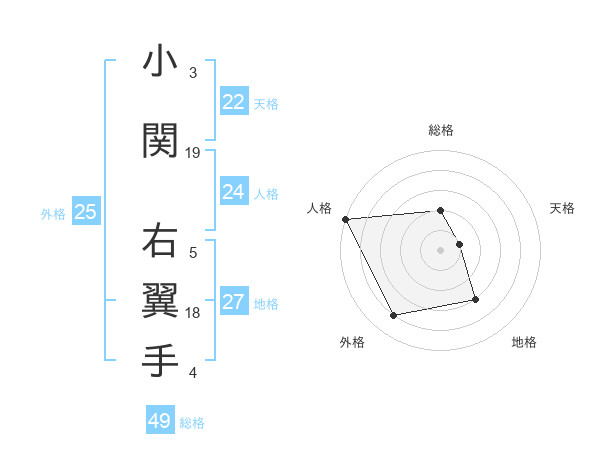 小関 右翼手さんの総格は49画の2点