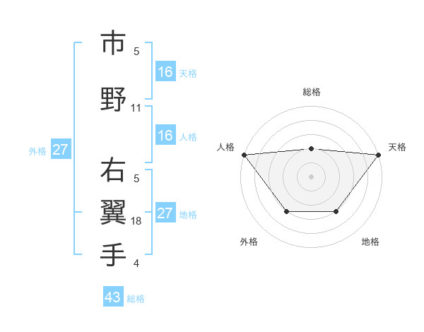 市野 右翼手さんの天格は16画の5点!
