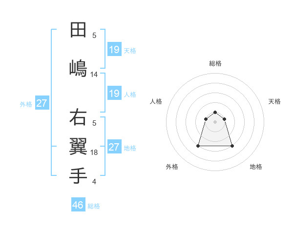 田嶋 右翼手さんの地格は27画の3点!