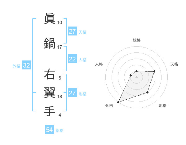 眞鍋 右翼手さんを姓名の画数から五運を鑑定