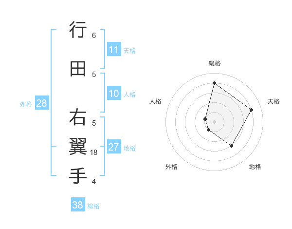 行田 右翼手さんを姓名の画数から五運を鑑定