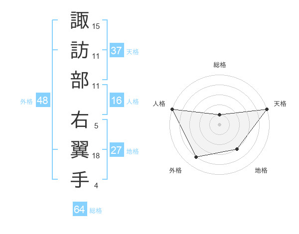 諏訪部 右翼手さんの総格は64画の1点!